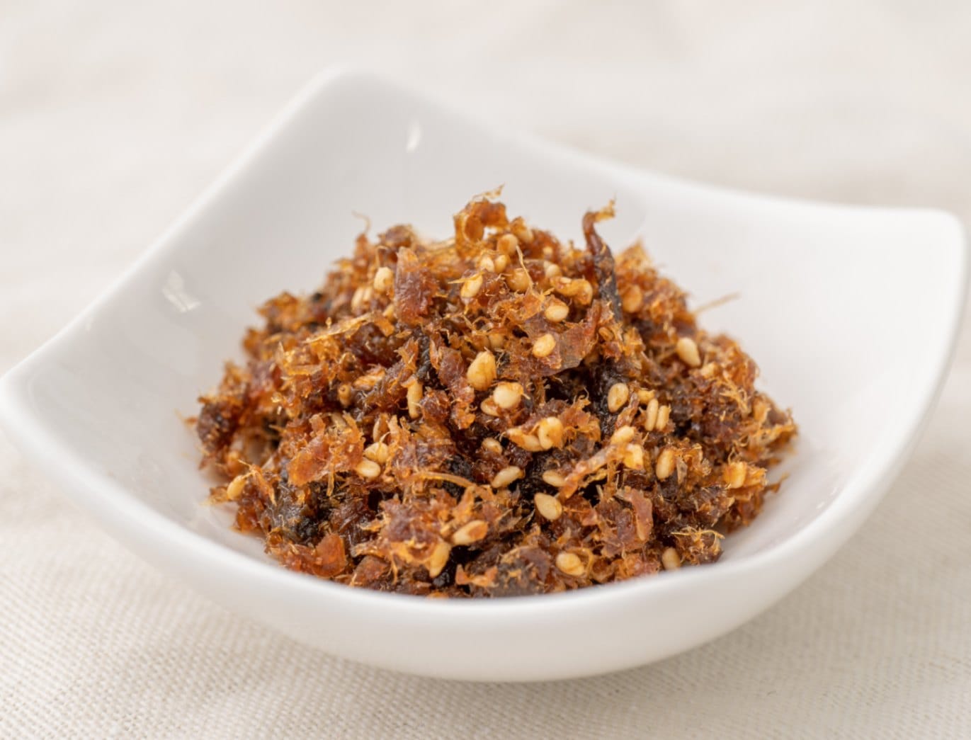 かつお節、白ゴマ、きくらげを甘口のタレで炊き上げています。